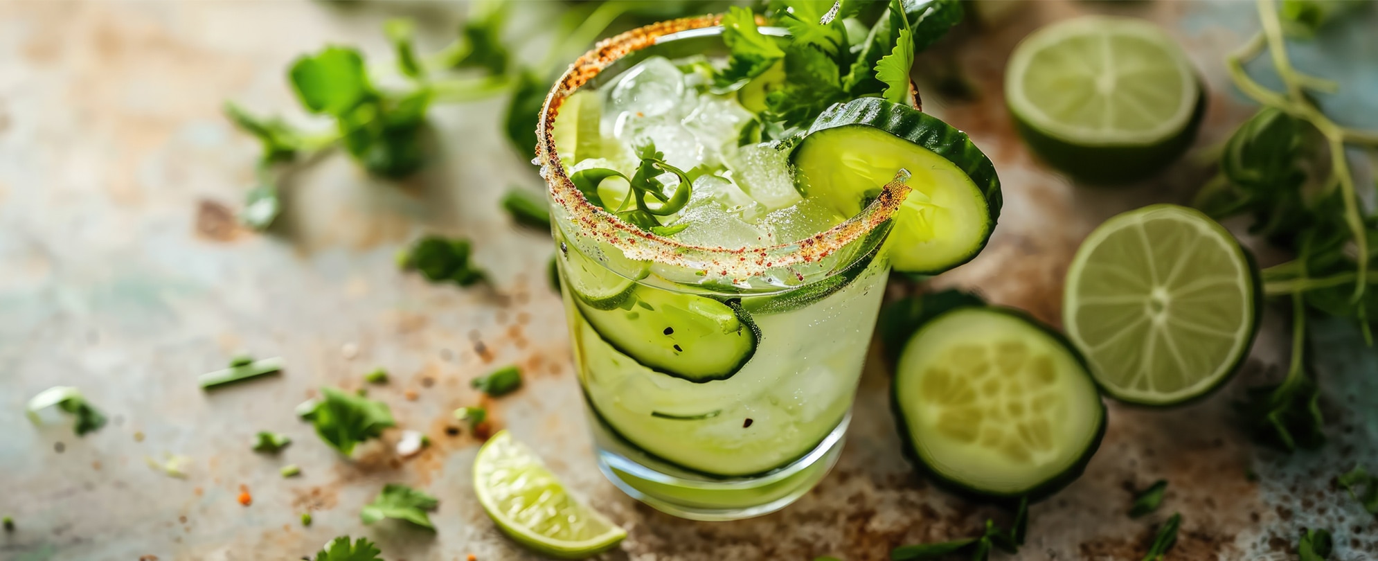 Enjoy a bold, smoky margarita with a little spice in every sip. Tequila Blanco and mezcal are brightened by fresh lime and crisp cucumber, while the jalapeño and chili-lime rim add a subtle kick and zesty finish.
